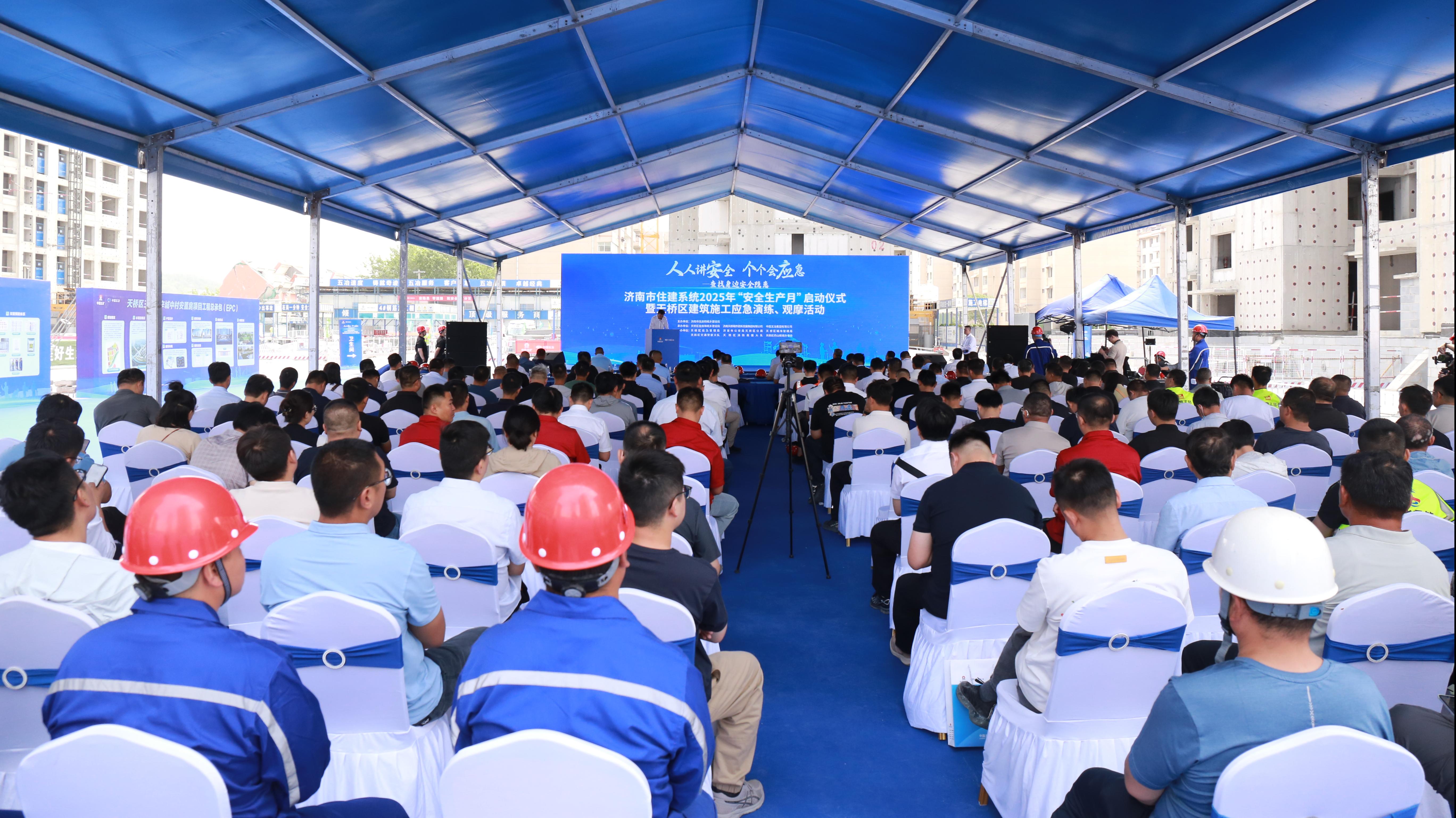 6月5日,公司联合济南市住房和城乡建设局在济南天桥王炉北辛城中村安置房项目现场举行“安全生产月”活动启动仪式。仪式现场,项目部宣读了安全生产倡议书,参建各方在现场庄严宣誓,表达了落实安全生产责任的坚定决心。活动中,项目部开展了高空坠落应急演练,进一步提升了面对突发事件的应急组织及处置能力。随后,与会嘉宾深入项目现场,实地参观了项目质量安全展区、“科技赋能 创引未来”机器展示区、样板间展示区、智慧工地展区、党建引领展区、安全体验区以及一站式工人服务区,项目在打造全过程高品质现场方面的扎实举措和显著成效,赢得了参观人员的一致好评。