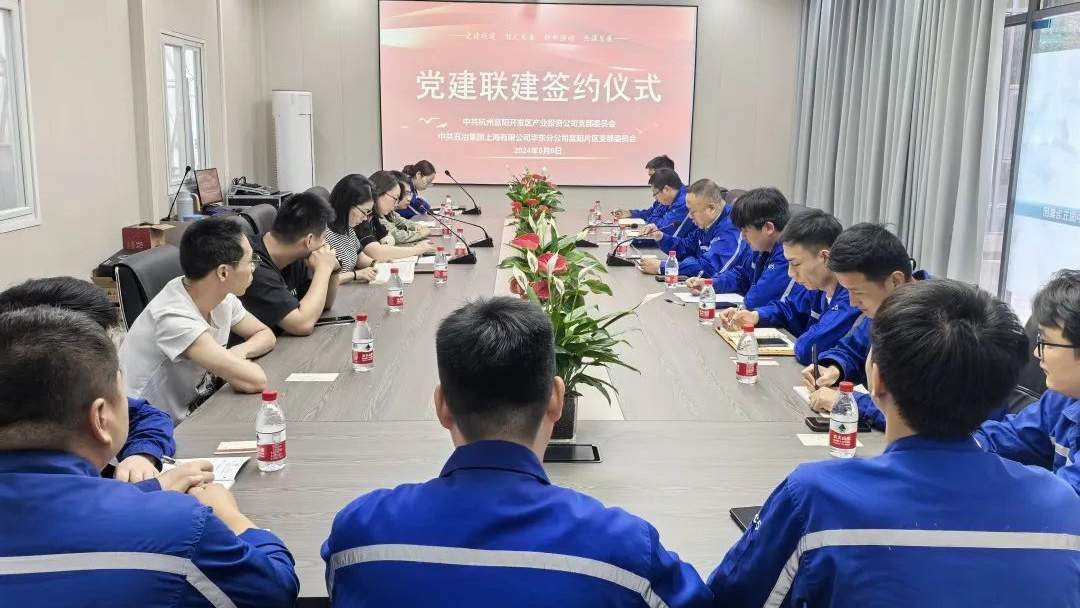 6月6日,华东公司富阳片区党支部与杭州富阳开发区产业投资有限公司党支部举行党建联建签约仪式,并在银湖数智创新中心项目开展“党建联建聚合力 粽情端午送廉风”主题活动。活动旨在通过资源联享、党员联管、廉洁联控、队伍联训、活动联谊等形式,探索党建工作新路径、新方法,加强基层党组织建设,提高党组织凝聚力和战斗力,实现资源共享、优势互补、共同发展。签约仪式上,与会人员围绕党建联建共建、推动项目高品质建设进行深入交流,一致认为开展党建联建共建是实现党组织优势互补、党建与业务融合促进的有益尝试。在与会人员的共同见证下,双方签署了《党建共建联盟协议书》。
